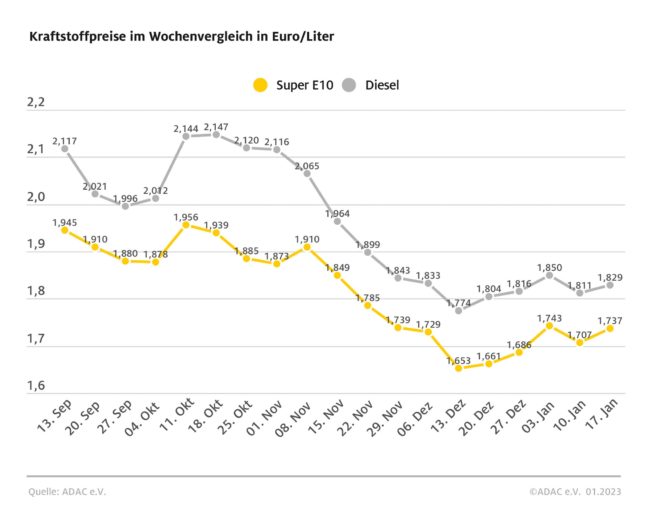 München (ots) – Die Kraftstoffpreise in Deutschland ziehen wieder spürbar an, dies ist das Ergebnis der aktuellen ADAC Auswertung. So kostet ein Liter Super E10 im bundesweiten Mittel derzeit 1,737 Euro und damit drei Cent mehr als vor einer Woche. Etwas geringer fällt der Anstieg bei Diesel aus: Ein Liter kostet aktuell 1,829 Euro – ein…