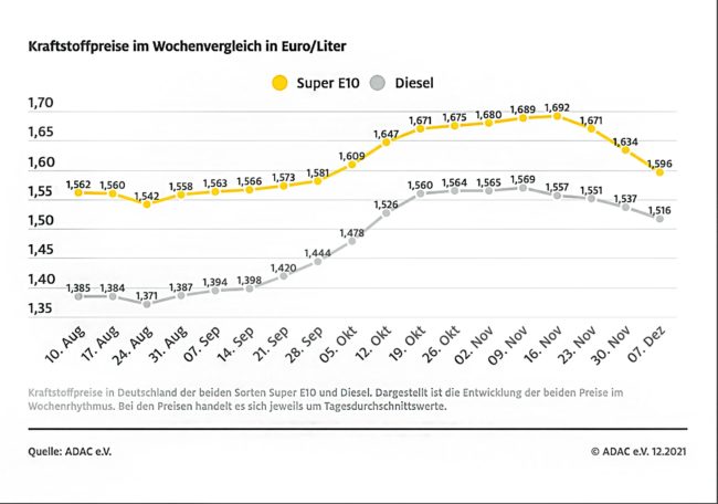 München (ots) – Nach wochenlangem Anstieg kannte der Benzinpreis zuletzt nur eine Richtung: nach unten. Wie die aktuelle ADAC Auswertung der Kraftstoffpreise zeigt, kostet ein Liter Super E10 im bundesweiten Mittel 1,596 Euro, das sind 3,8 Cent weniger als vor Wochenfrist. Bereits in der vergangenen Woche war der Ottokraftstoff im Vergleich zur Vorwoche um 3,7 Cent…