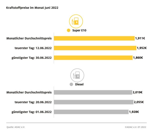 München (ots) – Nach einem Monat Tankrabatt fällt die Bilanz aus Sicht der Autofahrer alles in allem ernüchternd aus: Ein Liter Super E10 kostete im Juni im bundesweiten Mittel 1,911 Euro und damit 15,3 Cent weniger als im Mai, als noch die reguläre Energiesteuer zu zahlen war. Das zeigt die aktuelle ADAC Auswertung der Kraftstoffpreise für…