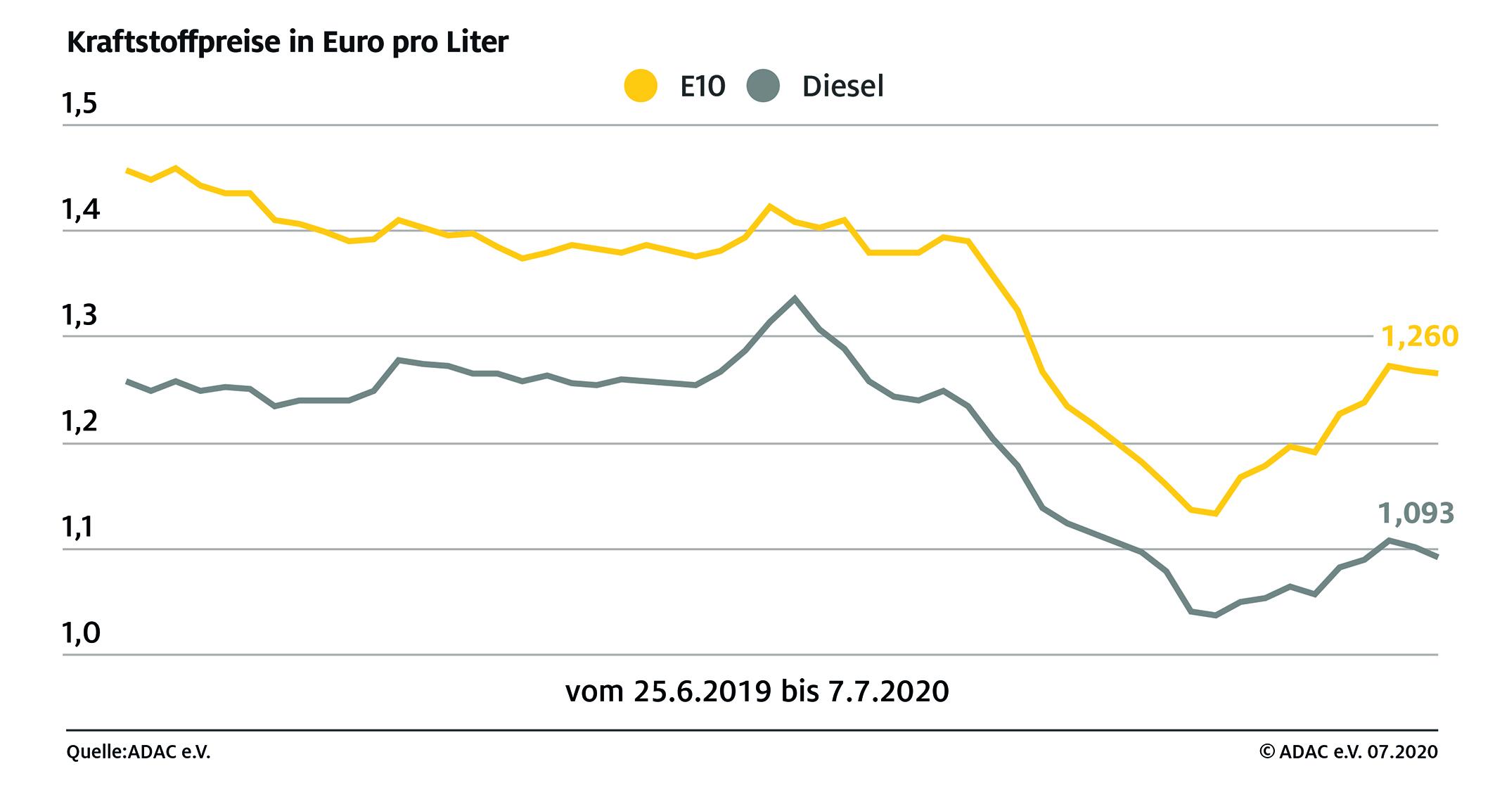 Unabhängig davon erwartet der ADAC, dass sich insbesondere die Anfang Juli in Kraft getretene Mehrwertsteuersenkung von 19 auf 16 Prozent spürbar preismindernd beim Tanken auswirken muss.